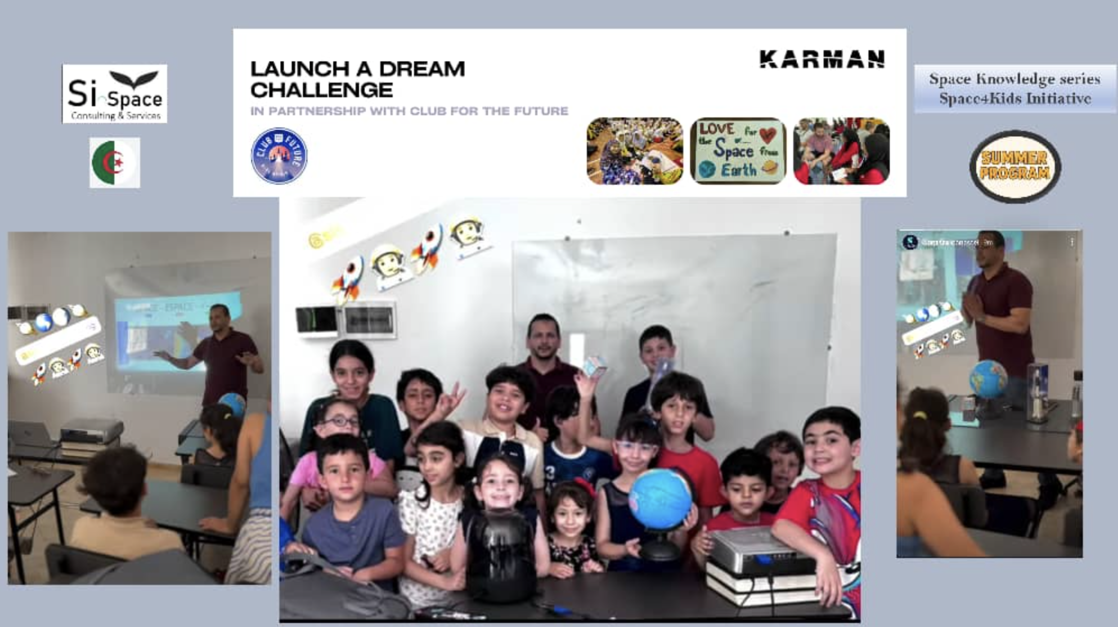 2024 Karman Fellow Salah Eddine Bentata delivered a Space4Kids workshop in Oran, Algeria, as part of a summer camp organised by Spectra School. More than 150 children aged 6 to 12 participated in sessions delivered in Arabic, English, and French. Activities included introductions to satellite concepts, orbit demonstrations, and collaborative postcard creation.